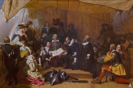 -> This is the picture about Embarkation of the Pilgrims in the U.S Capitol which interest me a lot. I think the hidden meaning behind this picture is god is always with us. We can be free and do whatever we want.